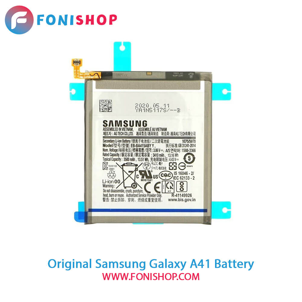 باتری سامسونگ A41 با ظرفیت 3500 میلی آمپر ساعت را می توانید با بالاترین کیفیت و بهترین قیمت از فونی شاپ تهیه نمایید.
